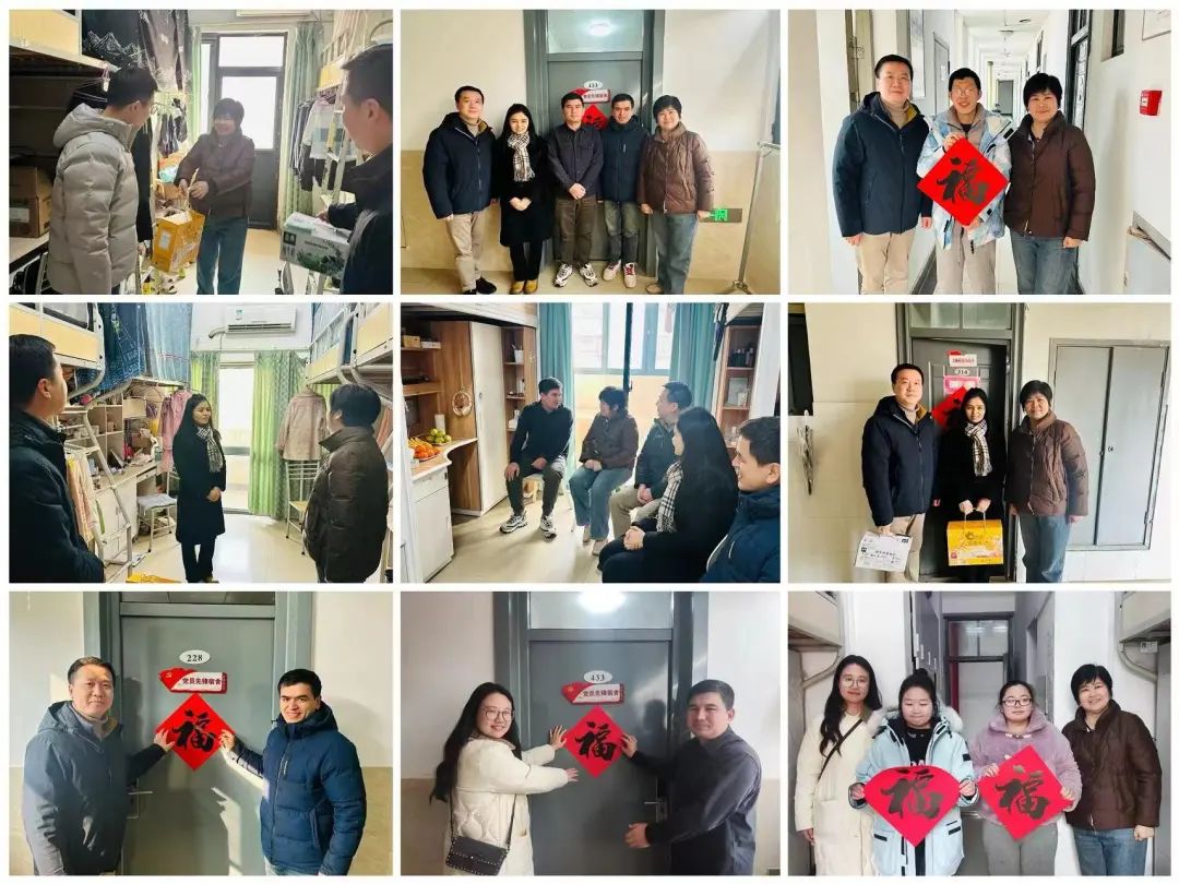 走访过程中,搜书吧 领导老师对留校学生进行了亲切慰问,介绍了学校春节期间的工作安排,并送上学院准备的暖心礼包,一起为学生宿舍贴福字,陪伴同学们度过一个快乐的新年。