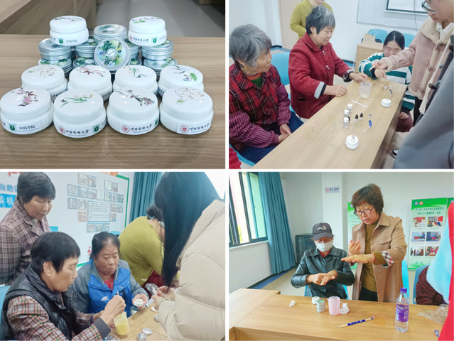 学院学生立足专业特色与学科专长,带领社区居民关爱皮肤健康,与社区居民共同制作护手霜,丰富文化生活。社区居民热情高涨,在同学们的帮助下顺利完成护手霜制作,通过活动实践进一步体会到了中医药文化与现代科学技术融合的魅力。