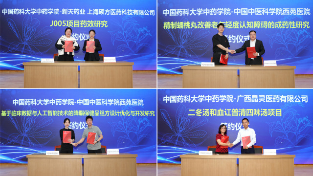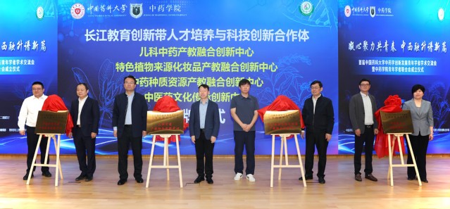 为扎实推进中药创制和转化技术研究长江教育创新带人才培养与科技创新合作体建设,创新产教深度融合有组织科研模式,与会领导共同为由搜书吧 牵头组建成立的首批4个产教融合创新中心(儿科中药产教融合创新中心、特色植物来源化妆品产教融合创新中心、中药种质资源产教融合创新中心、中医药文化传承创新中心)揭牌。此外,为进一步加强“医药融合”创新“中西融升”合作范式,会上还举行了“搜书吧 连云港中药临床产教融合创新基地”揭牌仪式,搜书吧 院长许风国和连云港市中医院院长高慧作为代表签署了校院战略合作协议。