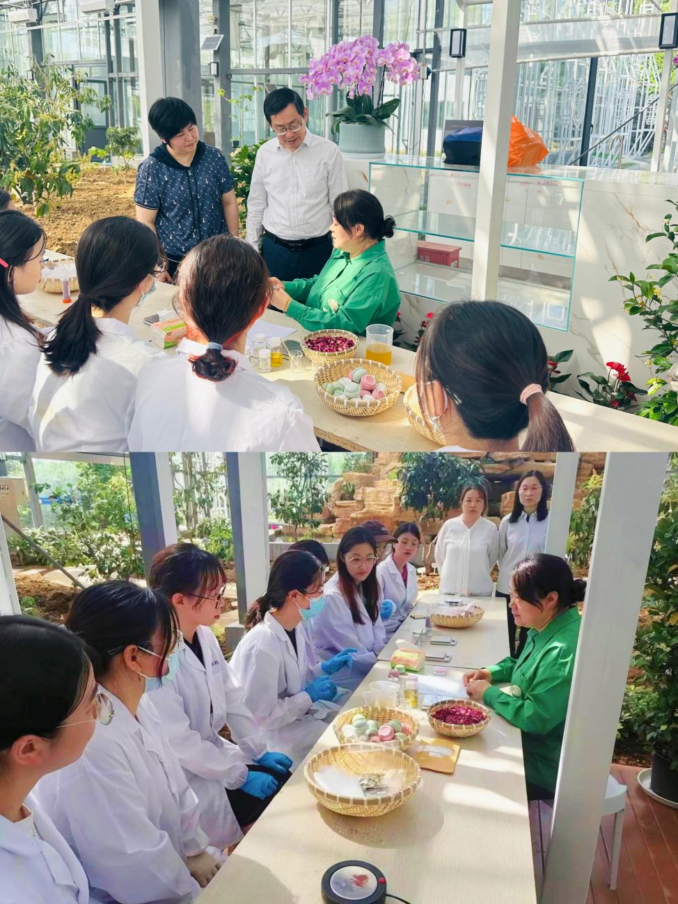 在药用植物园的温室大棚下,搜书吧 2024届化妆品毕业班同学参加“一路生花”毕业前的一节劳动实践课。搜书吧 中药药理与中医药学系黄芳教授带领同学们以蔷薇花作为原材料,自制眼影、腮红、香膏、香皂等化妆品。通过在实践活动中融入美育元素,培养中药学生的人文情怀和审美价值,让学生感受中医药文化之美。
