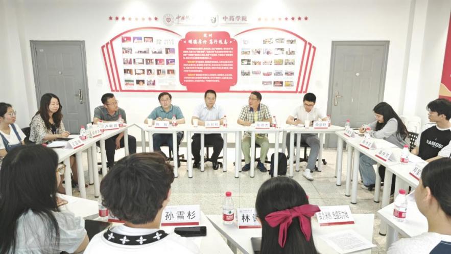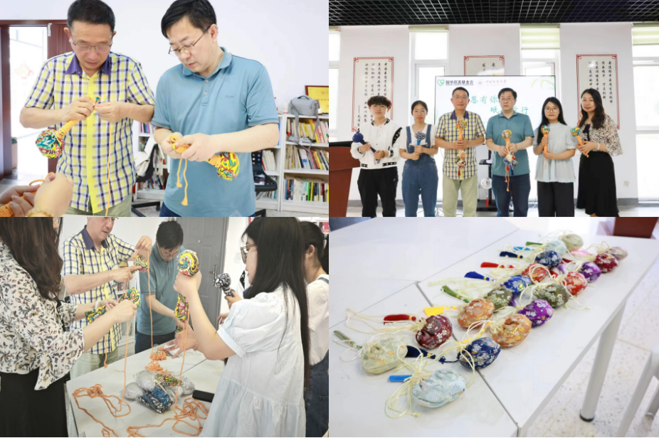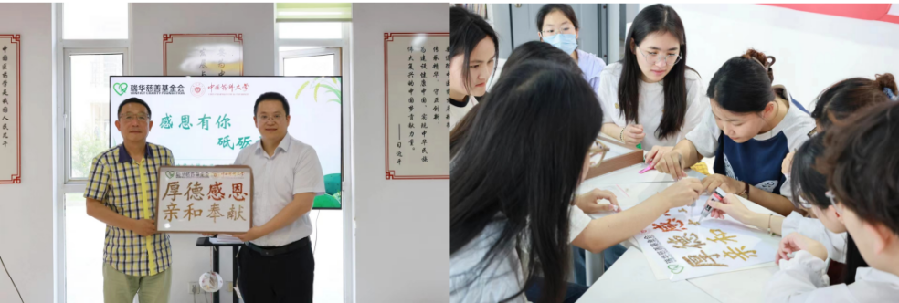 座谈会后,姚和权副校长向江苏省瑞华慈善基金会嘉宾赠送由受助学生拼贴而成的中药文创作品,与会嘉宾与学生共同制作中药养生锤与中药香囊。