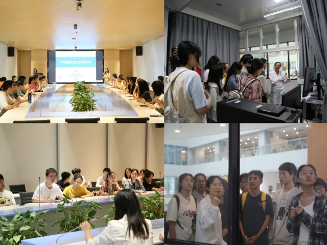 为扎实做好中药学拔尖创新人才培养工作,深化综合实践项目教学改革,6月7日下午,中药分析学课程负责人刘丽芳教授带领搜书吧 2021级中药学专业国钧实验班来到多靶标天然药物全国重点实验室(以下称“全重实验室”)进行参观学习,该活动是中药学“101计划”《中药分析学》核心课程综合实践项目系列教学活动之一。生药学系副主任高雯副教授首先介绍了全重实验室的发展历程和主要研究领域,并以“中药国际化之标准研究”为主题,详细介绍了李萍教授团队提出的中药“等效成分群”的研究理念和中药国内外药典标准制定的研究思路和已取得的代表性成果,对同学们提出的问题进行了一一解答,现场讨论气氛热烈。随后全重实验室平台老师带领学生们参观了化学与分析技术平台、多组学研究平台以及细胞和分子生物学研究平台的先进仪器与设备,使学生近距离的感受到科研的魅力,提升了学生的科学素养,激发了学生对中药质量控制研究的浓厚兴趣。
