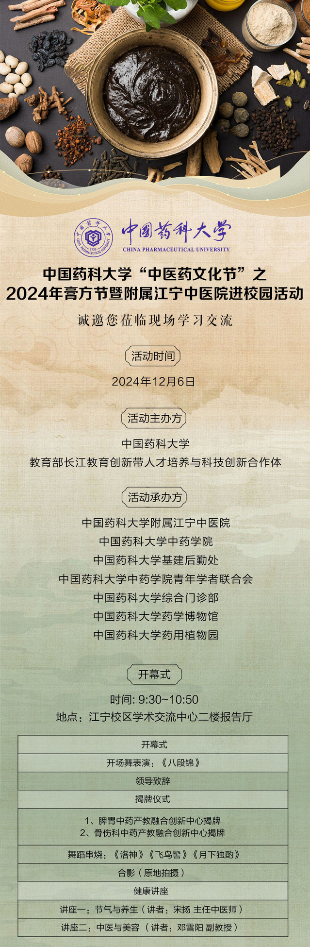 搜书吧 “中医药文化节”之 2024年膏方节暨附属江宁中医院进校园活动预通知