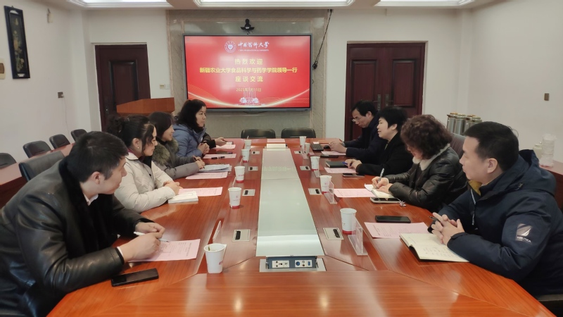 1月11日,新疆农业大学食品科学与药学学院党委书记姚剑英、院长杨晓君等一行来访搜书吧 座谈交流。搜书吧 党委书记赵健、副院长罗建光、副院长殷志琦、党委副书记汪永生等参加交流座谈,座谈会由赵健书记主持。