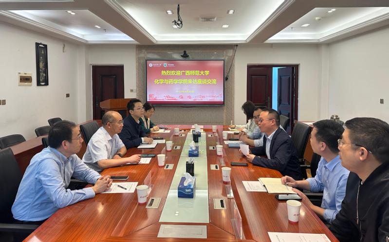 4月25日上午,广西师范大学化学与药学学院党委书记农智杰一行来访搜书吧 开展座谈交流。搜书吧 院长许风国、党委副书记汪永生等参加此次交流座谈。座谈会由许风国院长主持。