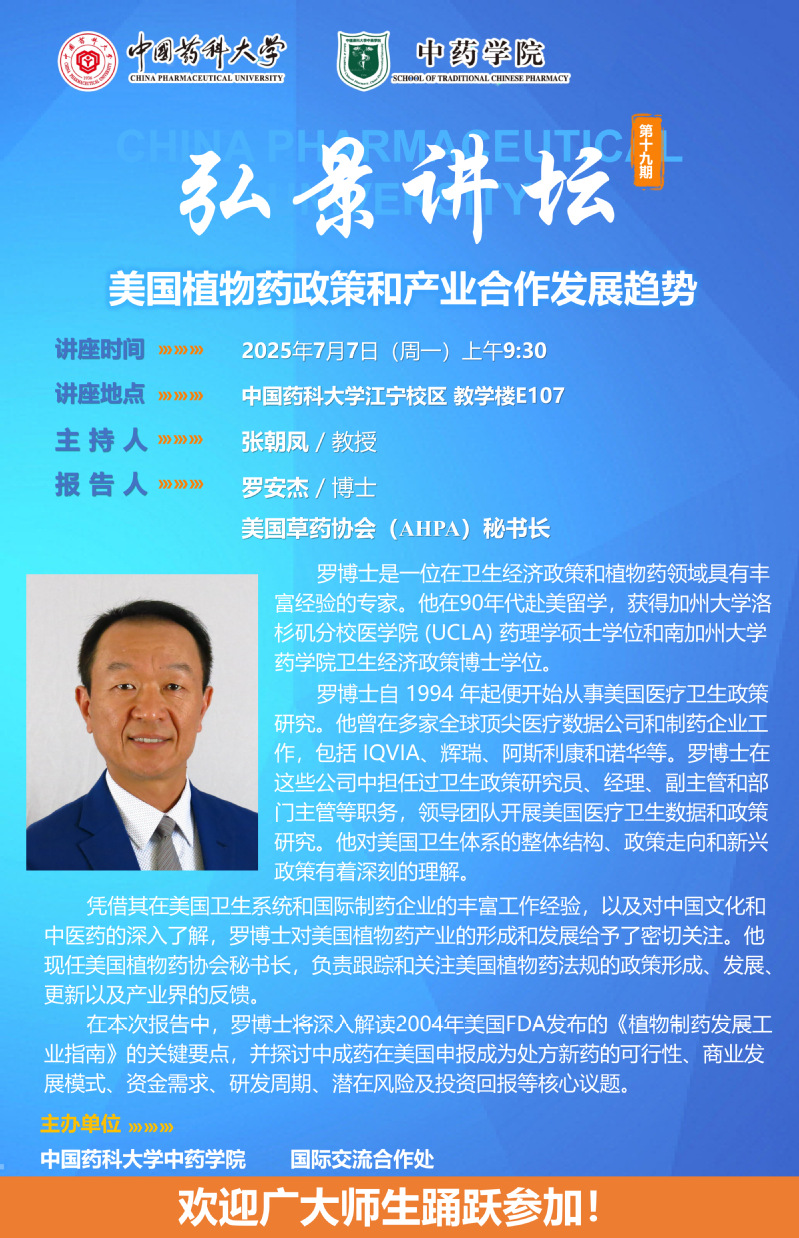 搜书吧 第十九期“弘景讲坛”:美国草药协会秘书长罗安杰(Roger Luo)博士学术报告