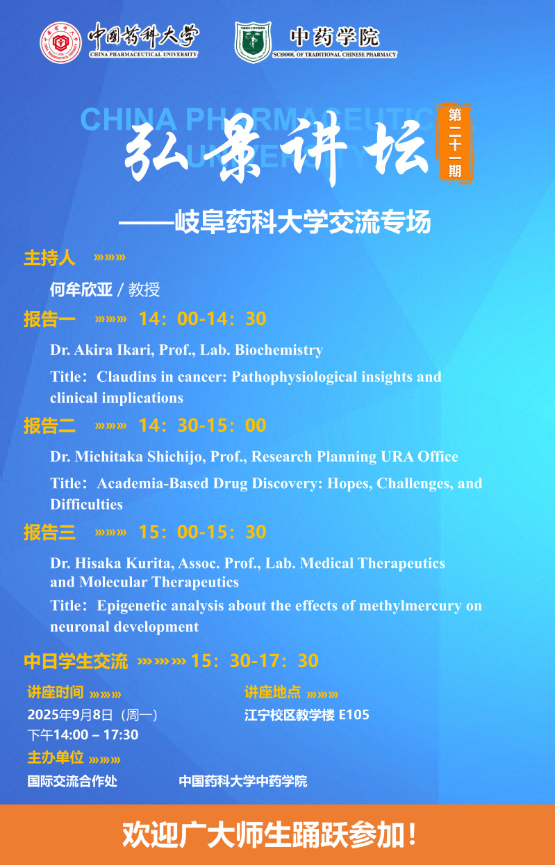 搜书吧 第二十一期“弘景讲坛”:岐阜药科大学学术报告与交流通知