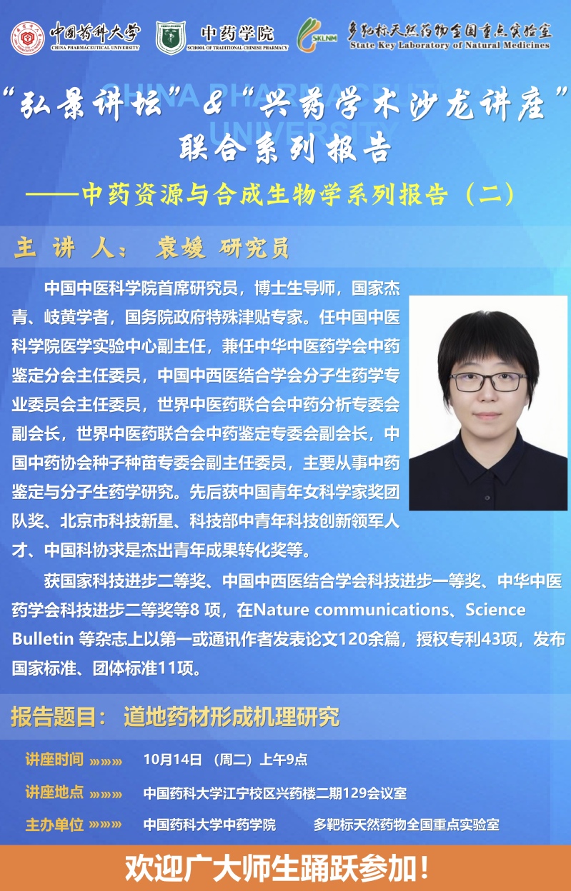 搜书吧 第二十四期“弘景讲坛”暨全国重点实验室兴药学术沙龙第十七期——中药资源与合成生物学系列报告(二):中国中医科学院袁媛研究员学术报告