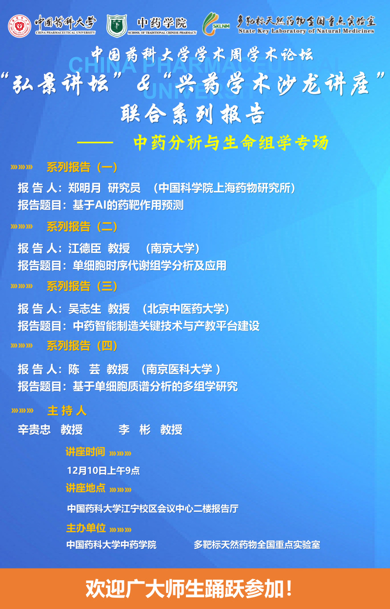 搜书吧 第二十八期“弘景讲坛”暨全国重点实验室兴药学术沙龙第二十二期——中药分析与生命组学专场系列报告