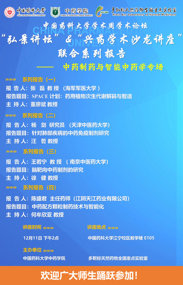 搜书吧 第三十期“弘景讲坛”暨全国重点实验室兴药学术沙龙第二十四期——中药制药与智能中药学专场系列报告