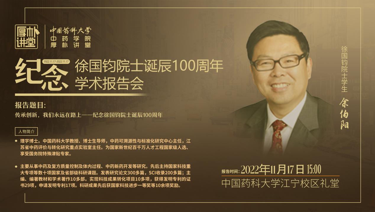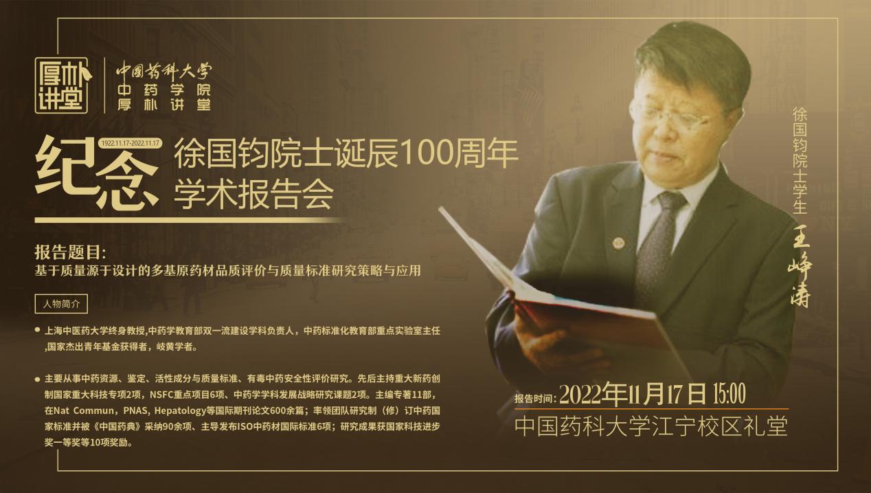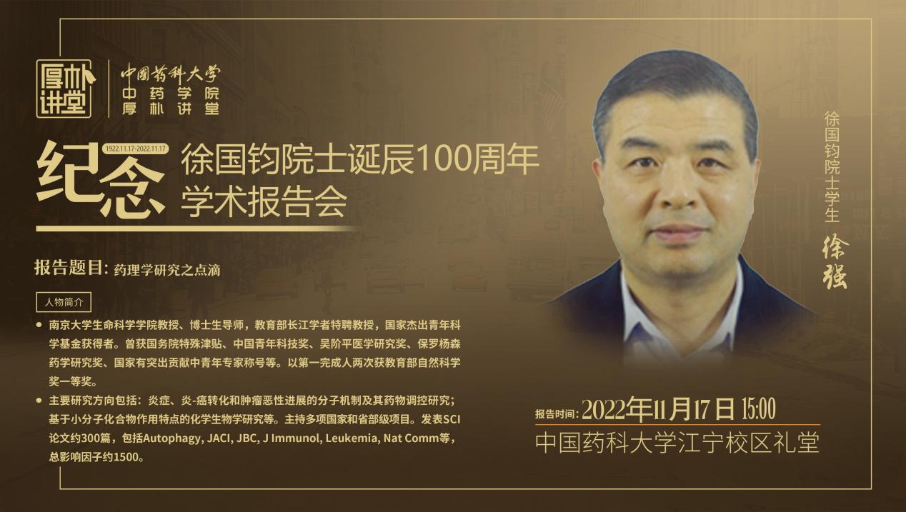 教授,著名生药学家、药学教育家徐国钧先生诞辰100周年。为致敬徐国钧先生,弘扬先生协作攻关、科学鉴定的创新精神和意志坚强、坚持工作的奉献精神,学校定于11月17日在江宁校区举办“鉴微百草担千钧 矢志兴药泽后学”——纪念徐国钧院士诞辰100周年学术报告会,邀请徐国钧院士的5位学生:上海中医药大学教授王峥涛、北京大学教授屠鹏飞、复旦大学教授陈道峰、南京大学教授徐强、搜书吧