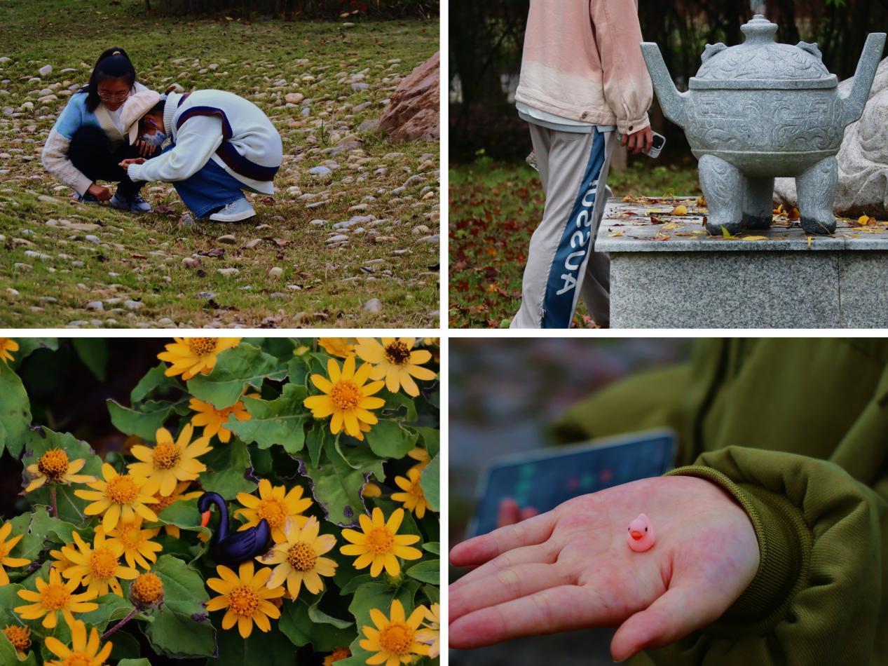 此次活动中,工作人员提前将“宝藏”隐藏在植物园的各类中药材旁,参与同学通过中药知识答题的形式获得“宝藏”藏匿信息,既增加了活动的趣味性,也为此次活动增添了中药味。