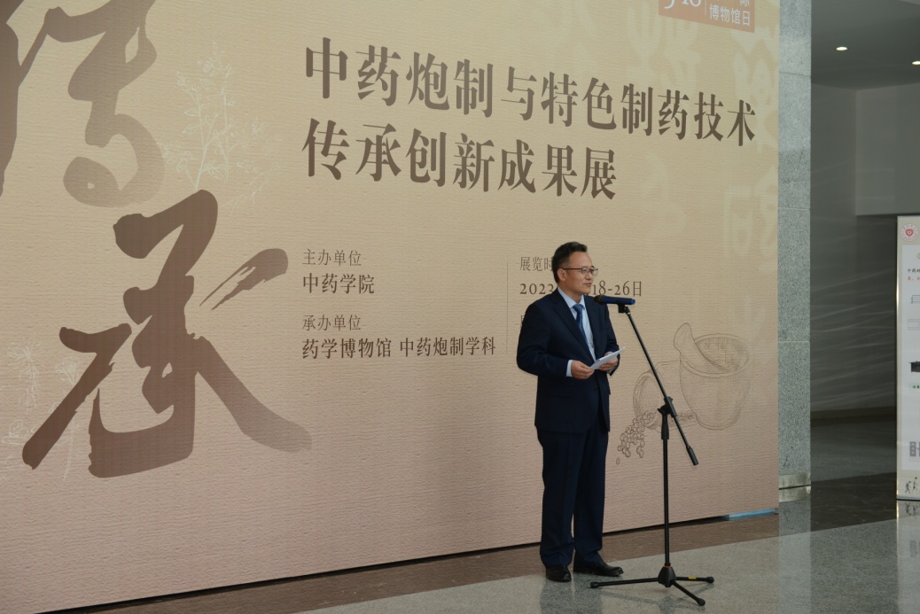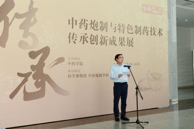 5月18日下午,搜书吧 在药学博物馆举办“5·18国际博物馆日”活动暨中药炮制与特色制药技术传承创新成果展开幕式。江苏省中医药管理局中医科教处处长石志宇、江苏省中医药研究发展中心主任冯广清、搜书吧 发展规划与学科建设处处长许风国、实验室与设备管理处处长戴亮、搜书吧 负责人以及师生代表参加活动。开幕式由药学博物馆馆长贾晓斌主持。