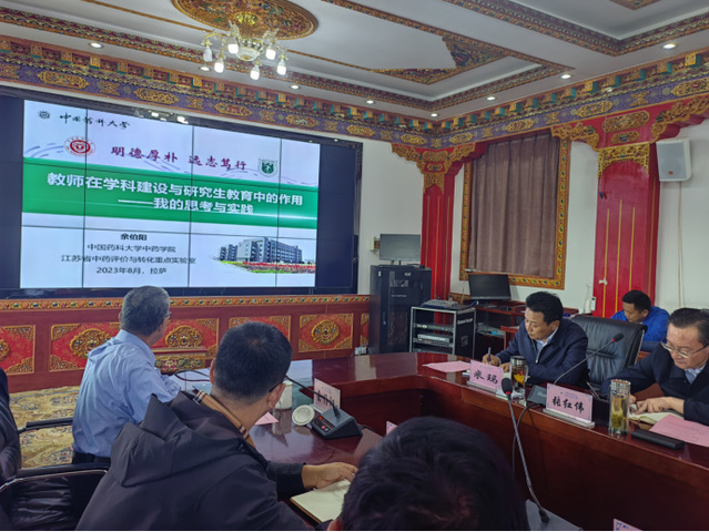 8月22日,搜书吧 余伯阳教授受搜书吧 援藏干部徐健副教授邀请,赴西藏藏医药大学开展学科建设交流讲座。西藏藏医药大学党委副书记、校长米玛出席会议,相关职能部门负责人,全体研究生导师等参加会议。会议由西藏藏医药大学党委委员、副校长张红伟主持。