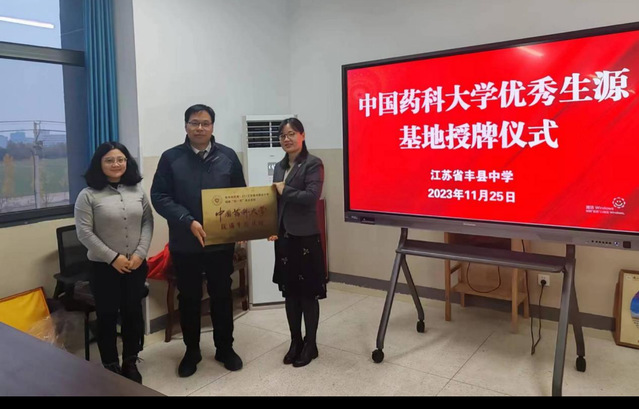 在优质生源挂牌仪式上,丰县中学校长韩运鹏热情欢迎各位高校代表的到来,并介绍了学校悠久的历史和丰硕的教学成果。张朝凤副院长介绍了搜书吧 的办学理念和专业特色,并向丰县中学授予了优质生源基地铜牌,双方均表示将长期并坚定地携手并进、共同培养医药事业的中坚人才,促进国家医药产业的高质量发展,为人民的健康保驾护航。