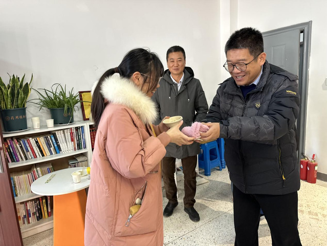 图2.为学生赠送暖冬礼物