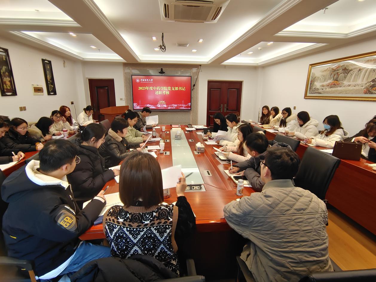 为进一步夯实基层党组织建设,推进党支部书记抓基层党建工作提质增效,12月21日,中药学院召开2023年度党支部书记述职评议考核会,院党委书记赵健、党委委员、党支部书记及组织员参加会议。会议由院党委书记赵健主持。